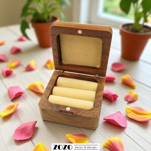 Két név és egy életre szóló ígéret.Ez a diófából készült gyűrűsdobozka a ti szerelmetek történetét meséli el, igazán személyessé a fedelére kerülő egyedi gravírozás teszi. A doboz belseje puha, bész színű bársonybetéttel van ellátva, mely védelmet nyújt a gyűrűknek, a biztonságos záródásért pedig a dobozba épített diszkrét mágnesek felelnek. Az ehhez kapcsolódó szövegdobozba írd be a neveket, melyeket kérhetsz "és" vagy "&" elválasztóval is. Annak megfelelően írd be, ahogy látni szeretnéd a dobozon. Ha egyéb változtatást szeretnél a feliratban, pl.: dátumot, vagy egyéb szöveget adnál meg, azt a "MEGJEGYZÉS" szövegdobozba írd be! Elkészítés előtt e-mailben fogsz kapni egy látványtervet.A dobozka méretei:6 cm széles6 cm mély3,5 cm magasAnyaga: diófa2 db gyűrű tárolásásra alkalmas